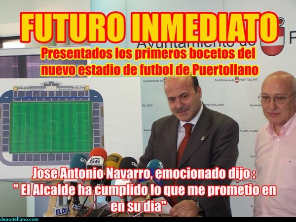Esta tarde, en las instalaciones del Ayuntamiento de Puertollano se han presentado los primeros trazos de lo que va a ser el nuevo estadio de la UD Puertollano. Allí estaban presentes el Concejal de Deportes, Luís Pizarro, el arquitecto técnico del proyecto (de la empresa Promotora Almodoveña), Fernando Sánchez Mora y representantes del club azul con su presidente a la cabeza José Antonio Navarro. También asistió el capitán Manolo Rodríguez, en representación de la plantilla.